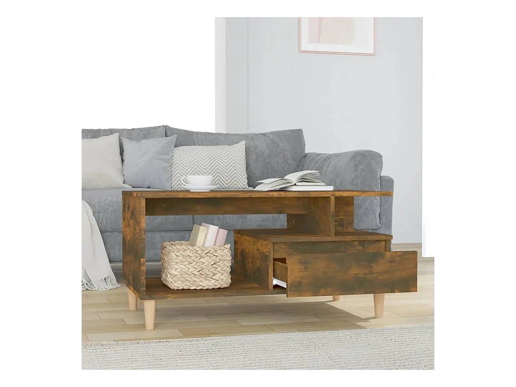 Mesa de centro madera contrachapada roble ahumado 90x49x45 cm ES49445