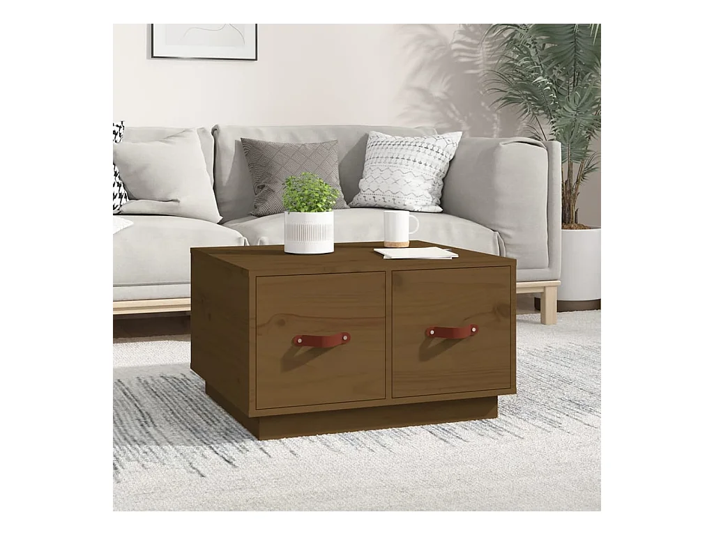 Mesa de centro madera maciza de pino marrón miel 60x53x35 cm ES45418