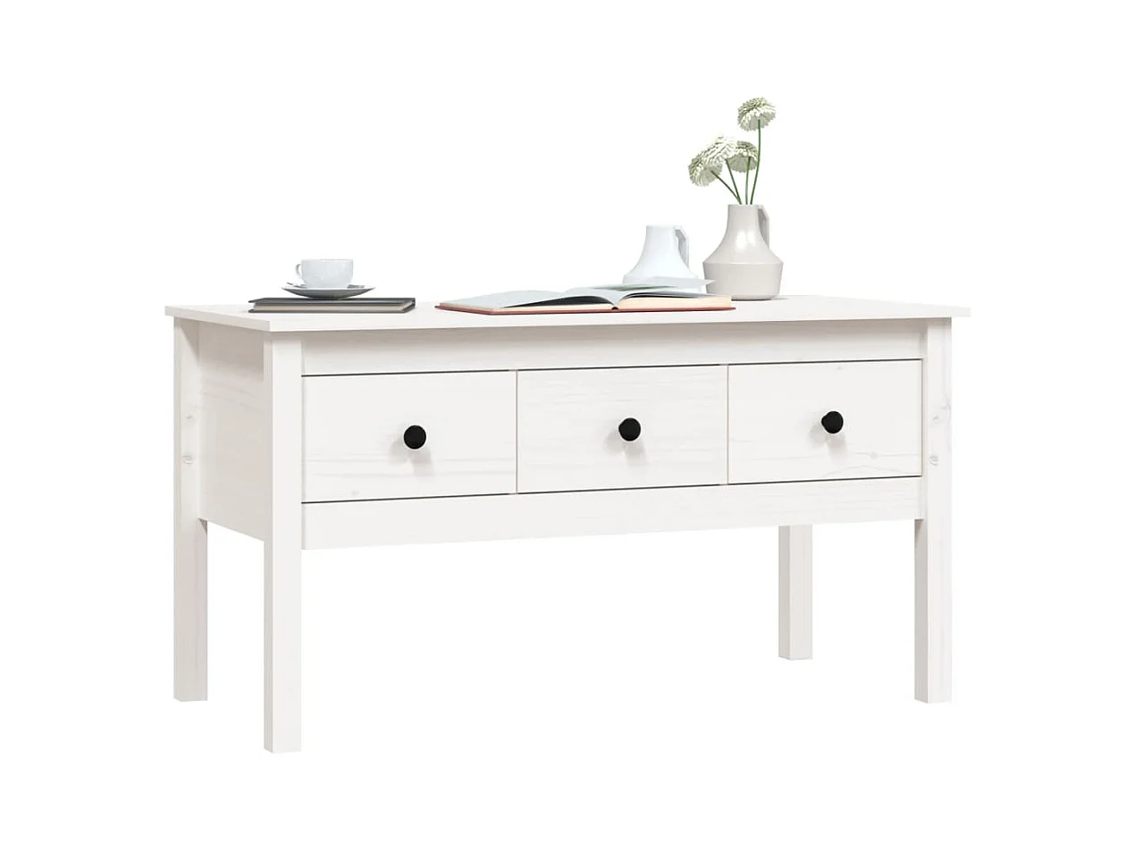Mesa de centro de madera maciza de pino blanca 102x49x55 cm ES73362
