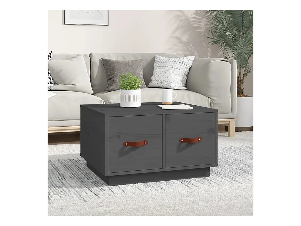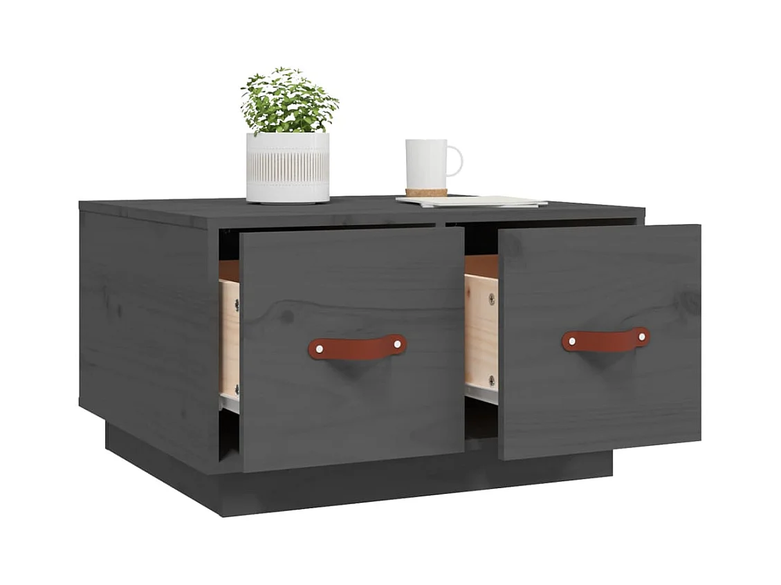 Mesa de centro de madera maciza de pino gris 60x53x35 cm ES41102