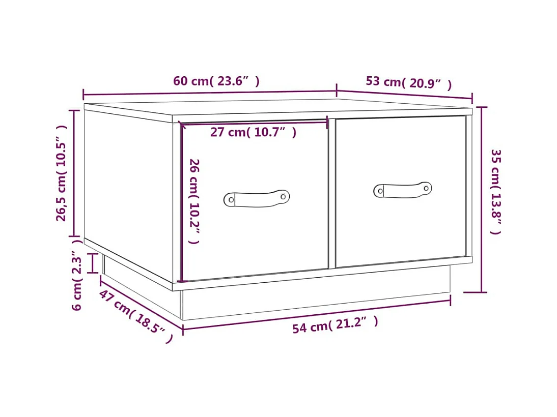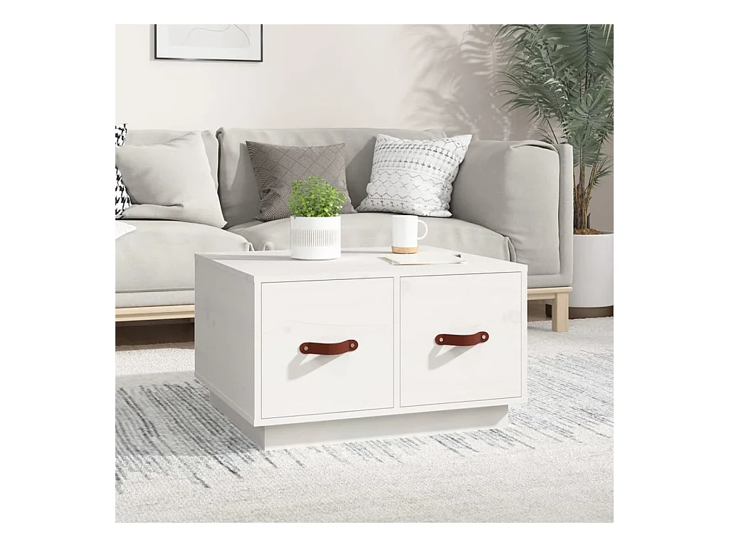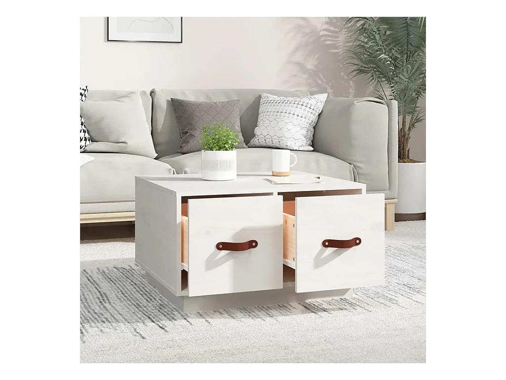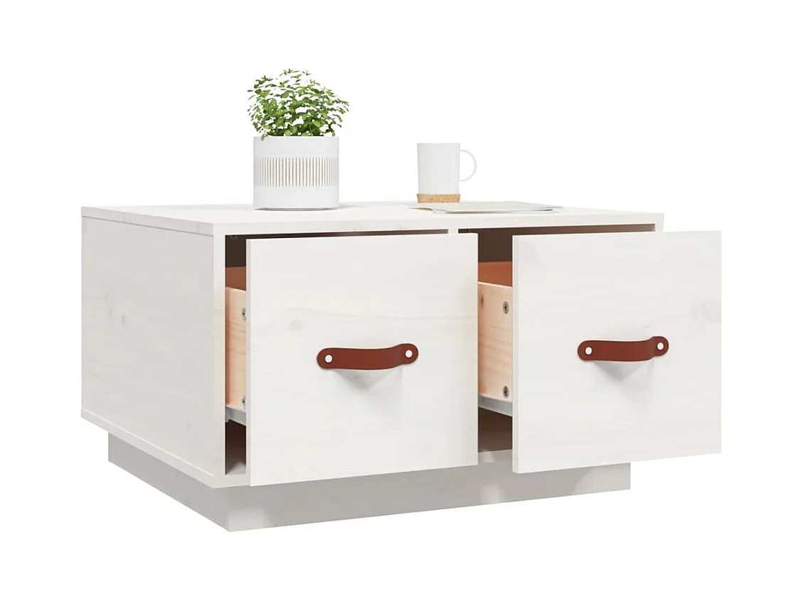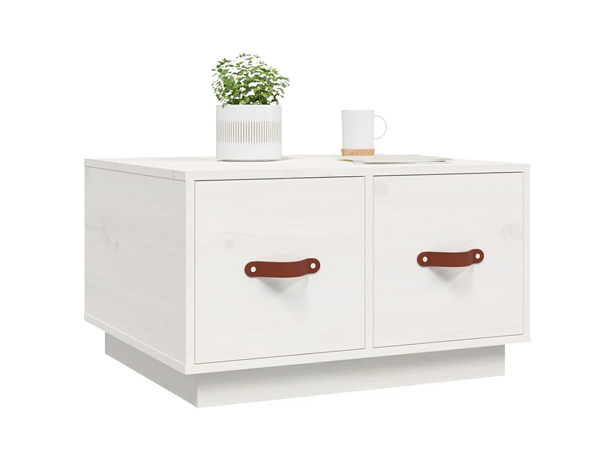 Mesa de centro de madera maciza de pino blanco 60x53x35 cm ES98860
