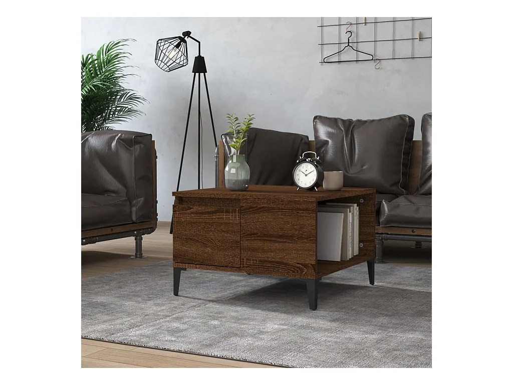 Mesa de centro | Mesa auxiliar madera ingeniería metal roble marrón 100x50x45cm SHL247767