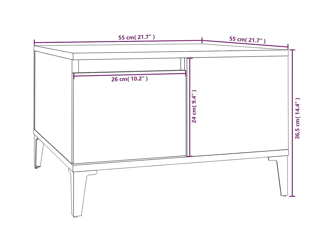 Mesa de centro | Mesa auxiliar madera ingeniería metal roble Sonoma 80x80x30 cm SHL934