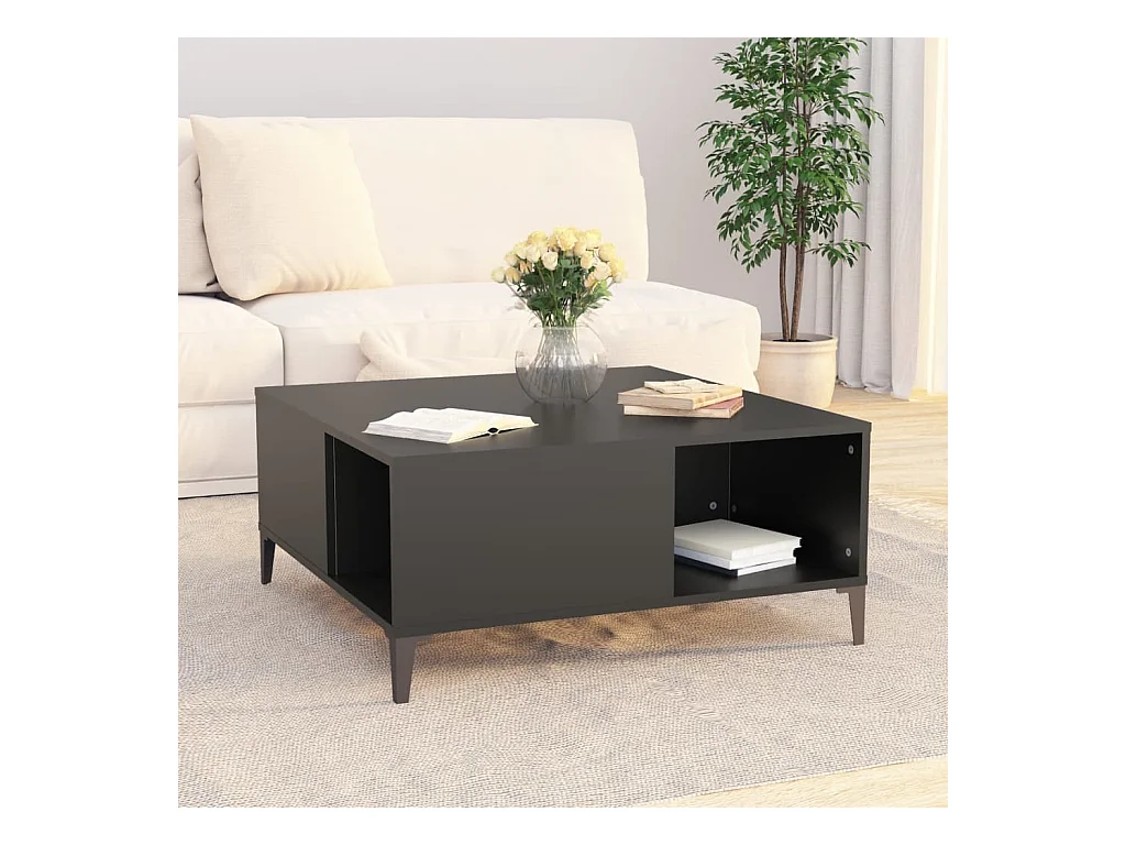 Mesa de centro-Mesa auxiliar de madera maciza de pino negro 80x81x36,5 cm SHL896