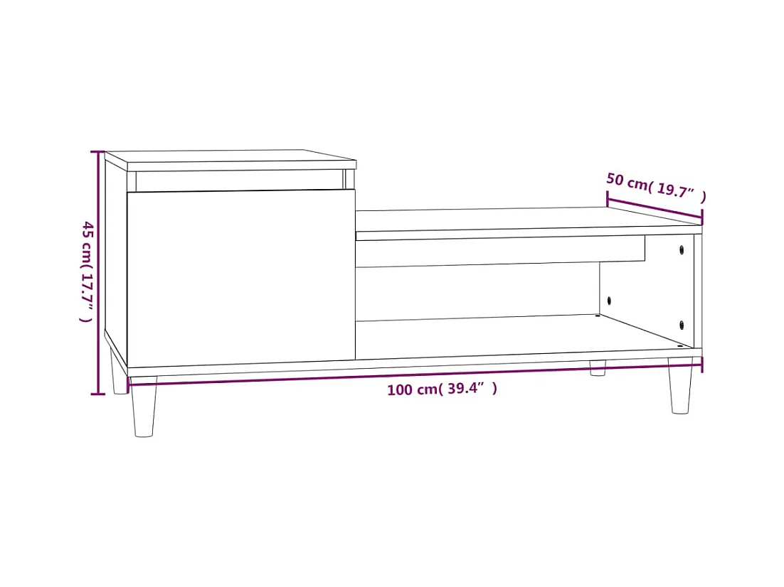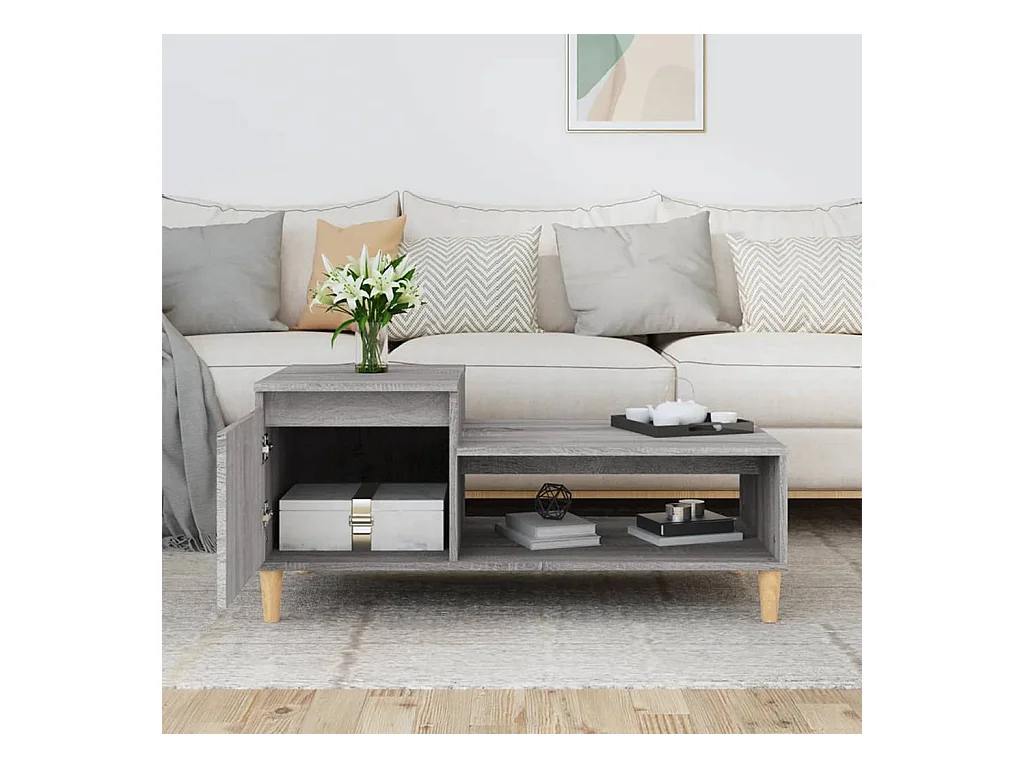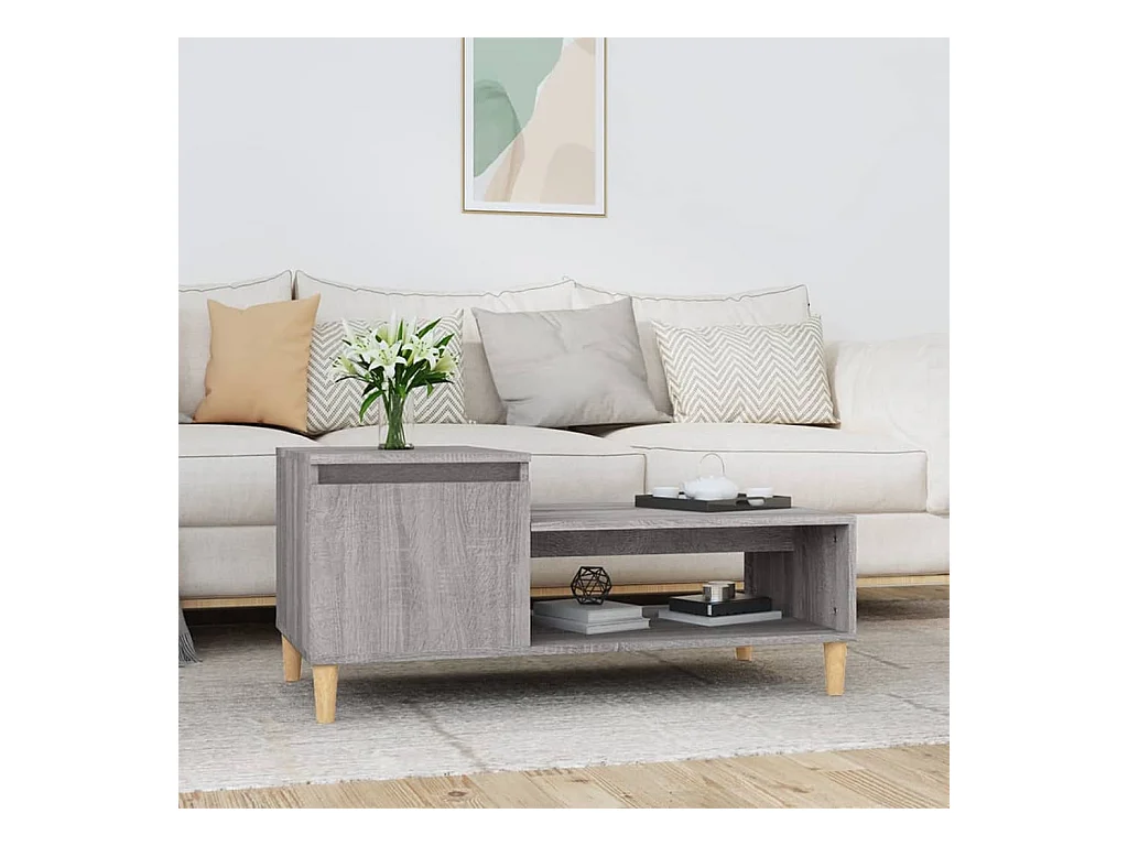 Mesa de centro-Mesa auxiliar de MDF y madera de abeto 110x55x43 cm SHL801