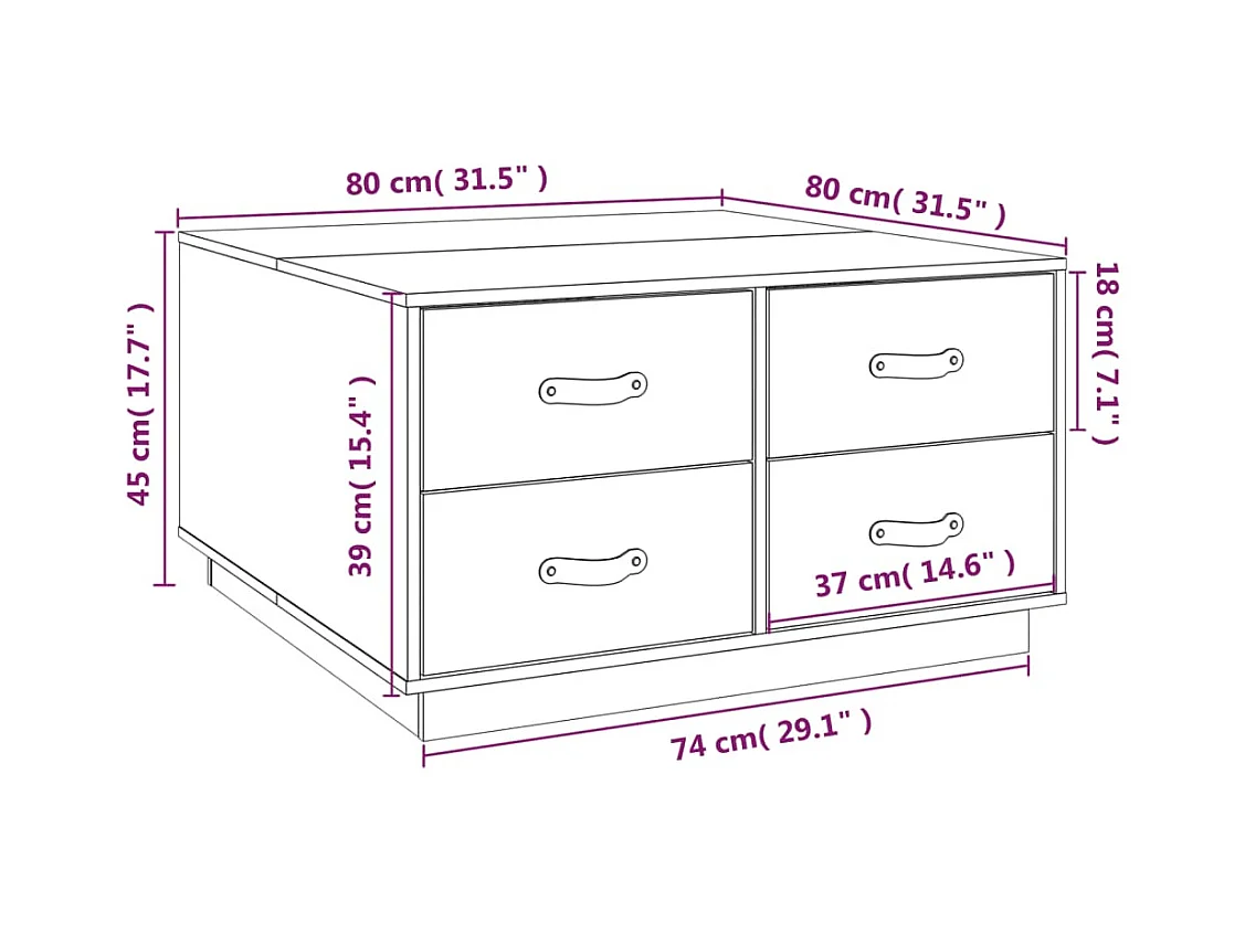 Mesa de centro de madera maciza de pino blanco 80x80x45 cm ES23746
