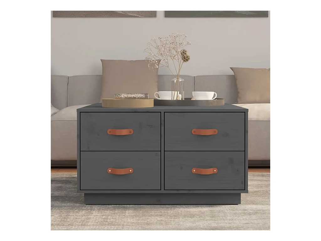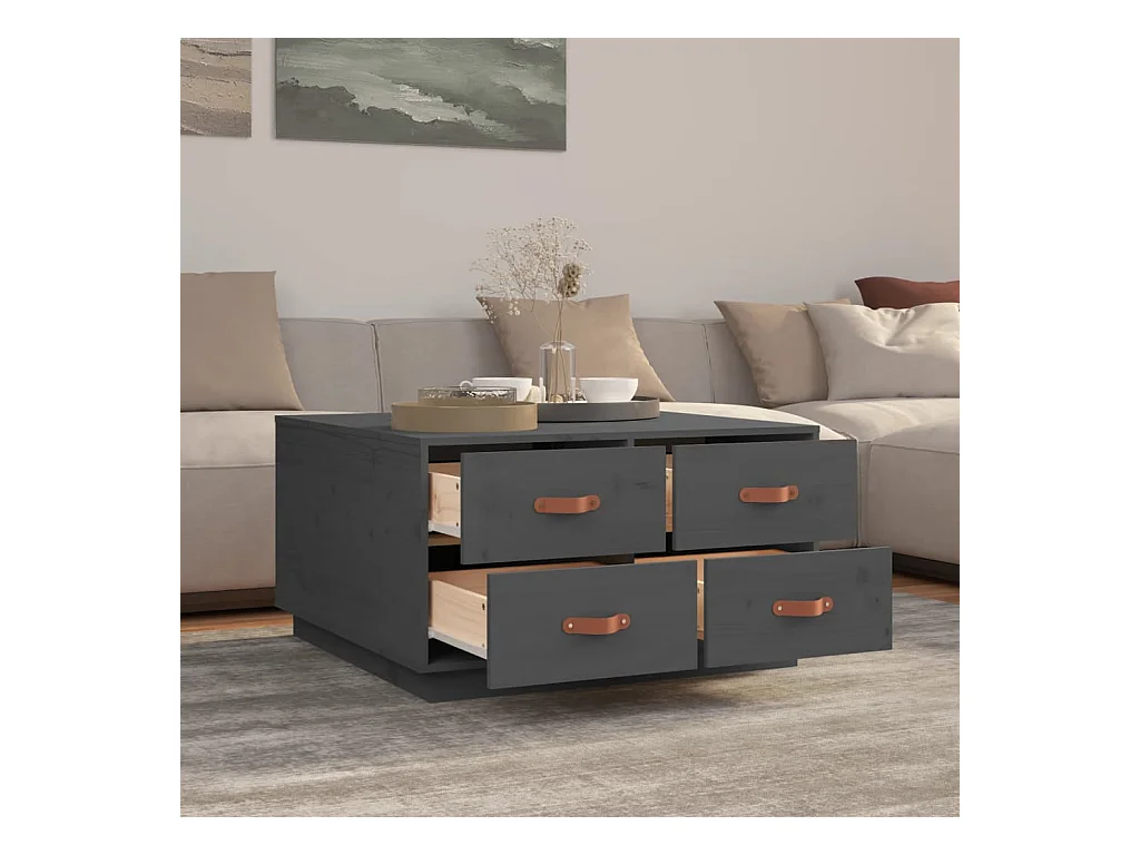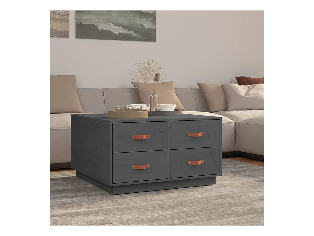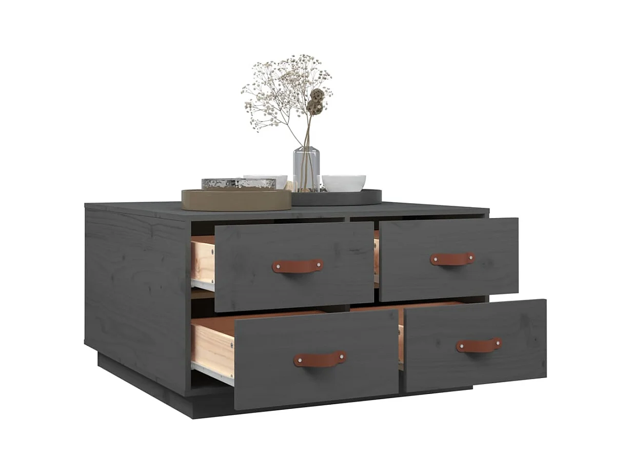 Mesa de centro de madera maciza de pino gris 80x80x45 cm ES65423