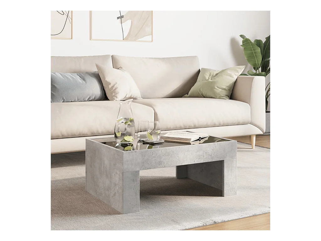 Mesa de centro y LED madera ingeniería gris hormigón 70x50x30cm