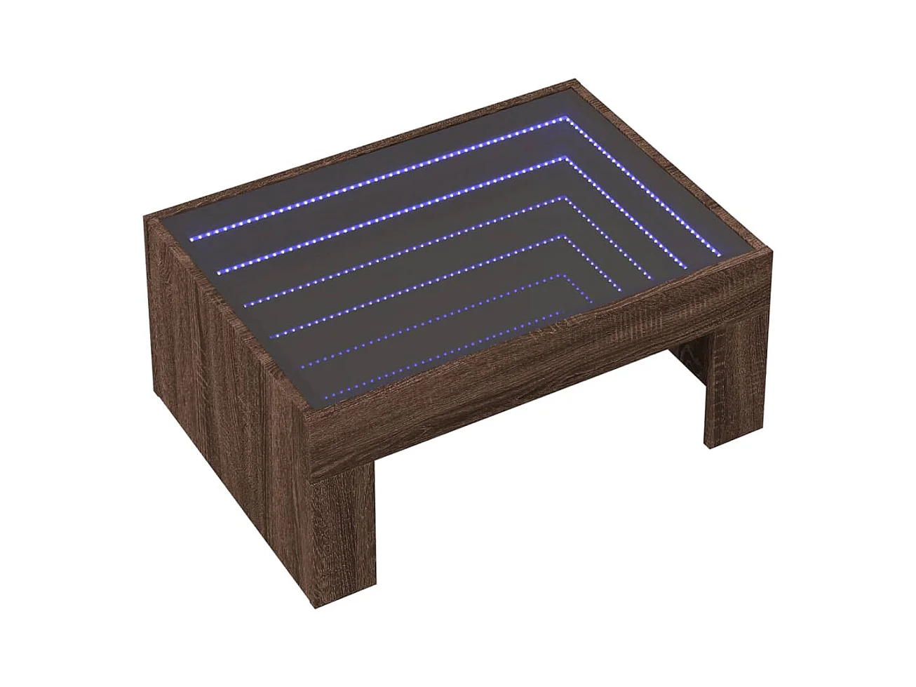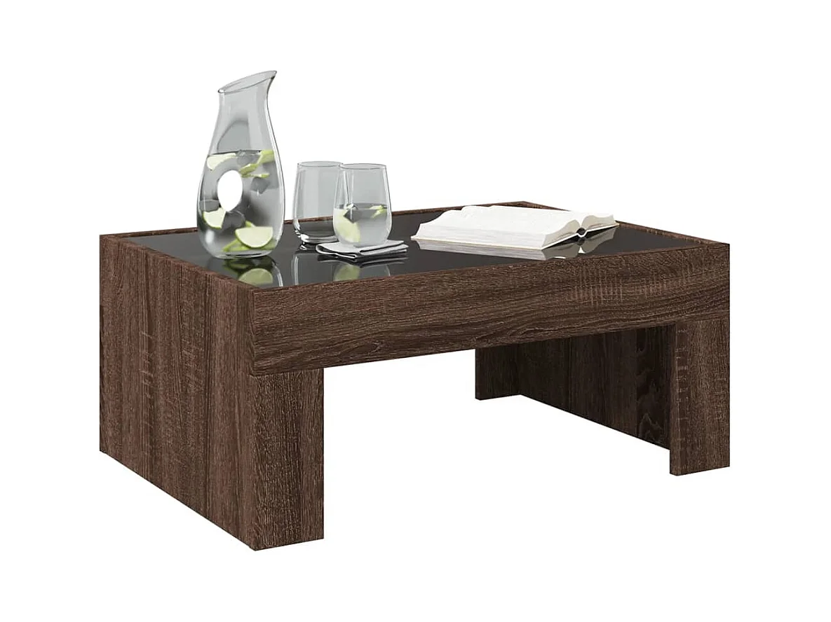 Mesa de centro y LED madera ingeniería marrón roble 70x50x30 cm