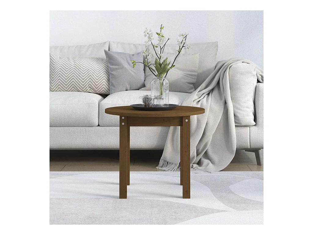 Mesa de centro de madera maciza de pino marrón miel Ø 55x45 cm