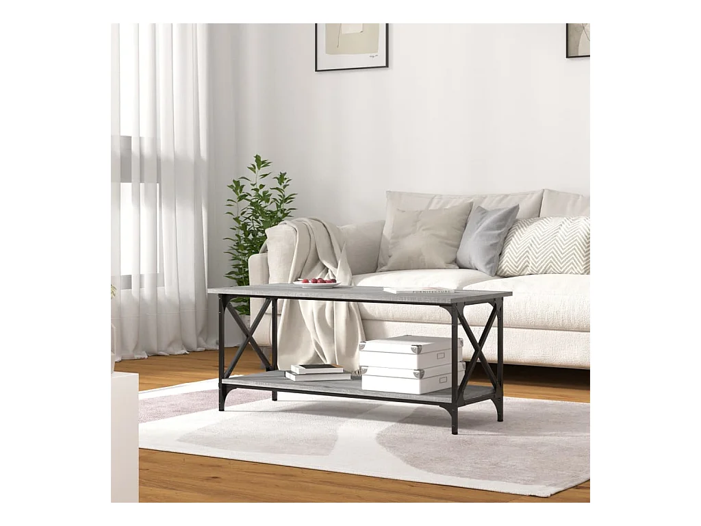 Mesa de centro madera y hierro gris Sonoma 100x45x45 cm