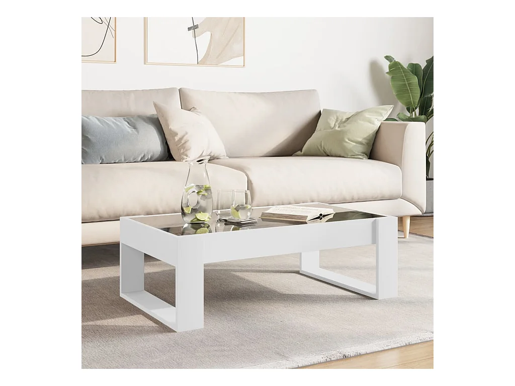 Mesa de centro-Mesa auxiliar madera de ingeniería blanco brillo 90x60x31 cm SHL4067