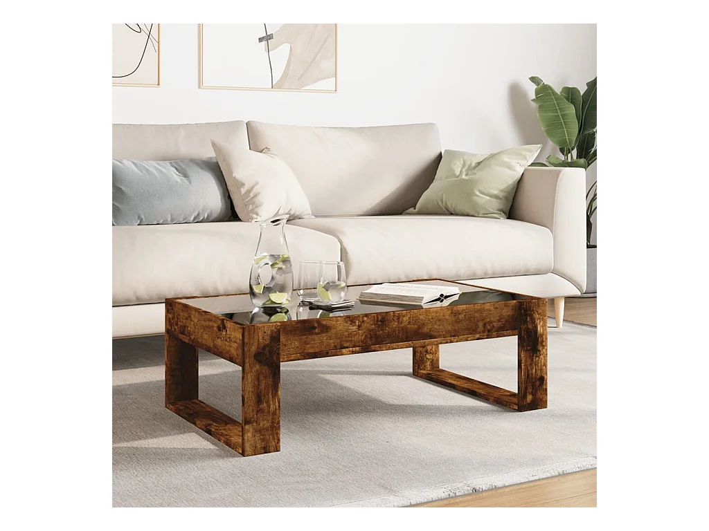 Mesa de centro con Infinity LED roble ahumado 90x53x30 cm
