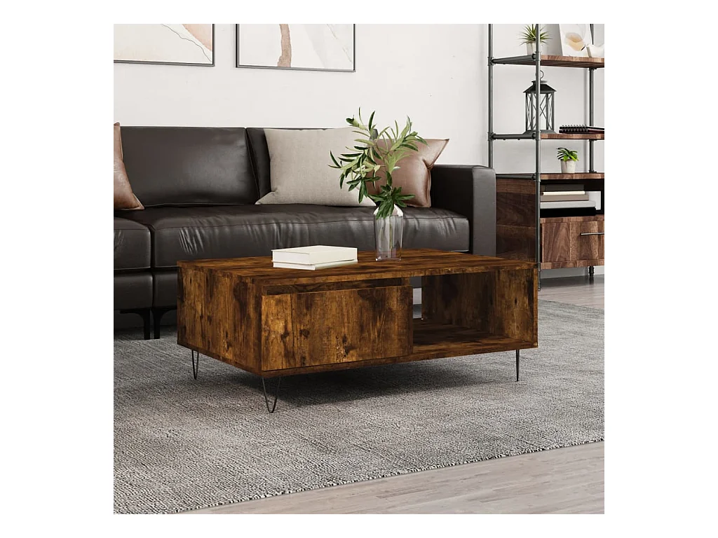 Mesa de centro madera contrachapada color roble 90x60x35 cm ES86084