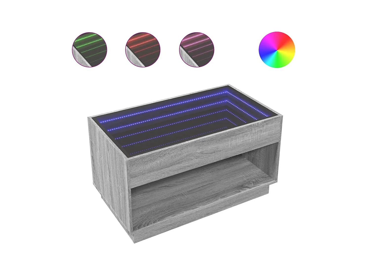 Mesa de centro con Infinity LED gris Sonoma 90x50x50 cm
