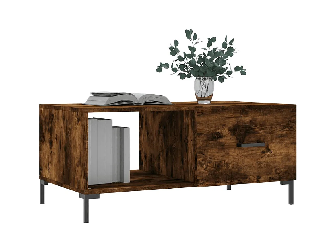 Mesa de centro | Mesa auxiliar madera de ingeniería y metal negro 100x100x30 cm SHL1952