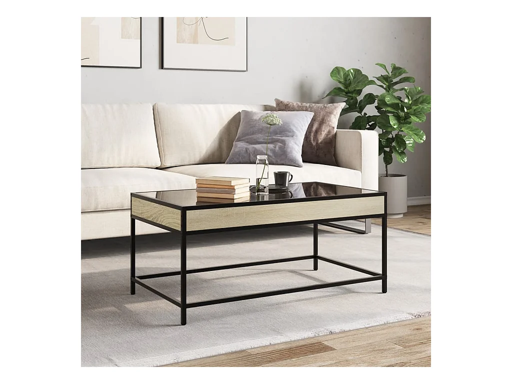 Mesa de centro | Mesa auxiliar madera ingeniería metal roble humo 100x50x45cm SHL4135