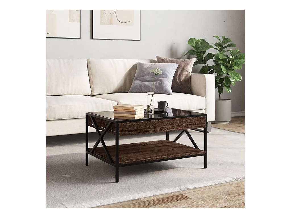 Mesa de centro-Mesa auxiliar madera de ingeniería roble ahumado 90x60x35 cm SHL169943