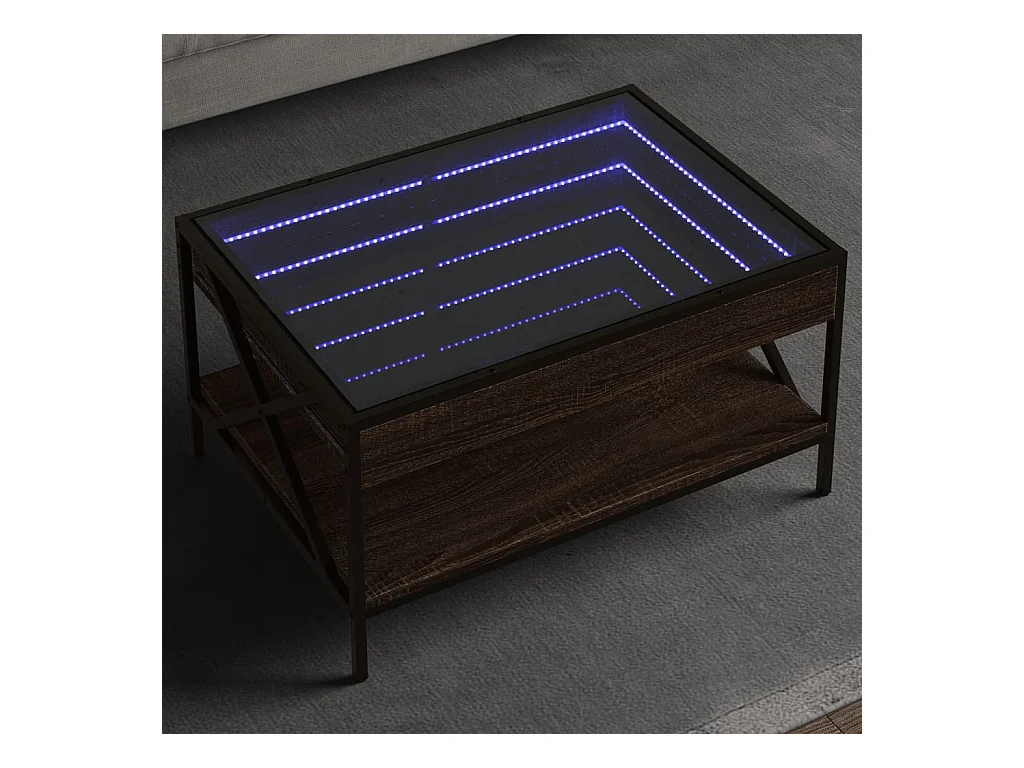 Mesa de centro con Infinity LED marrón roble 70x50x38 cm