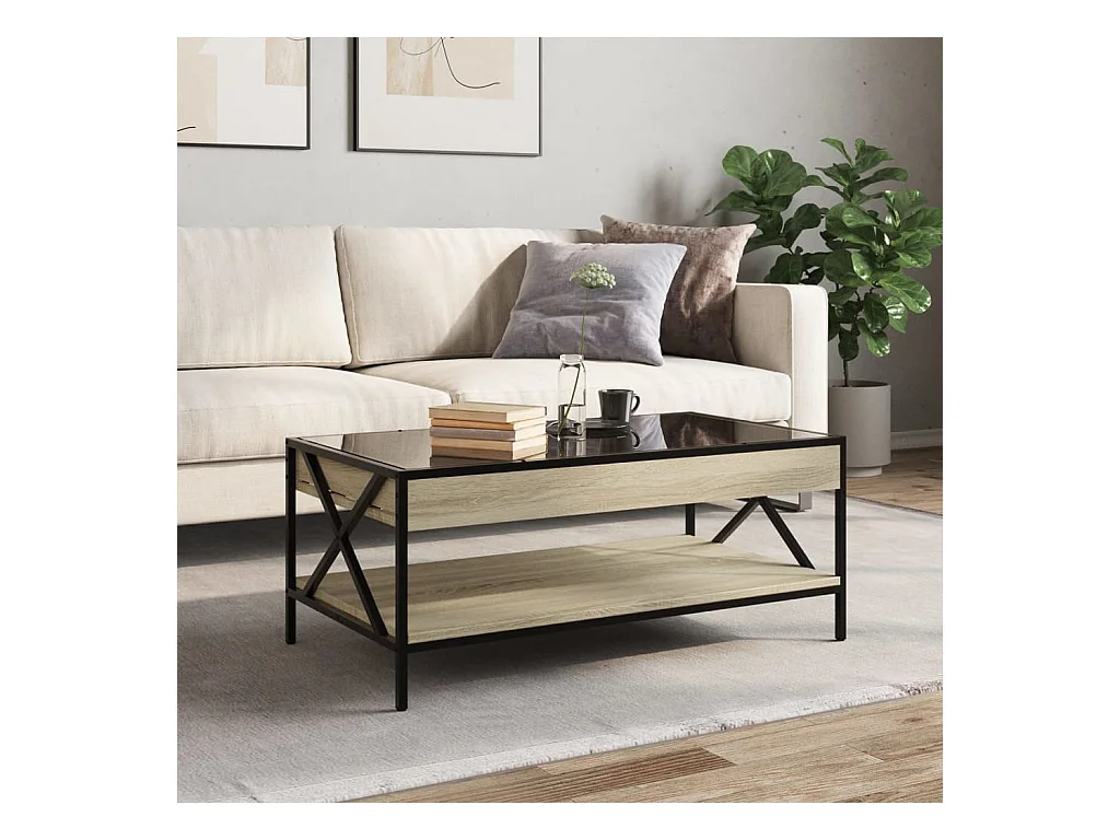 Mesa de centro-Mesa auxiliar madera de ingeniería roble ahumado 102x50x45 cm SHL164770