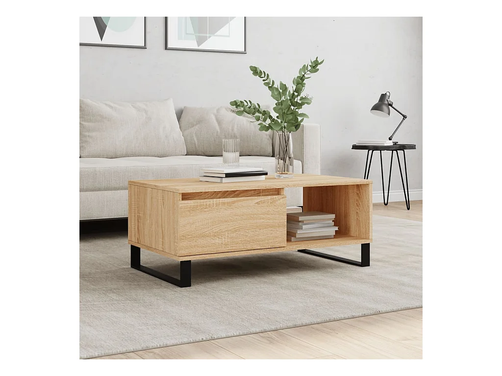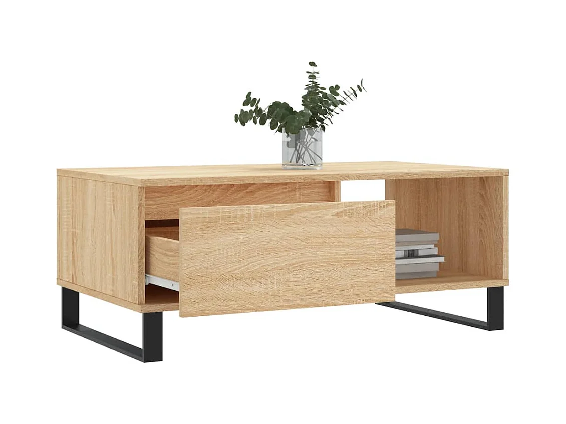 Mesa de centro | Mesa auxiliar madera ingeniería metal gris Sonoma 100x50x35 cm SHL2299