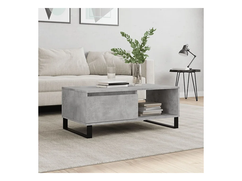 Mesa de centro | Mesa auxiliar madera ingeniería metal roble humo 100x50x50 cm SHL3927