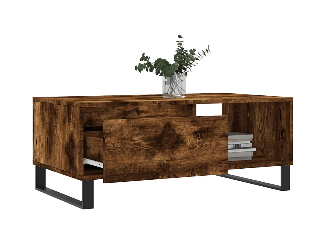 Mesa de centro | Mesa auxiliar madera ingeniería metal roble humo 100x50x35 cm SHL4789