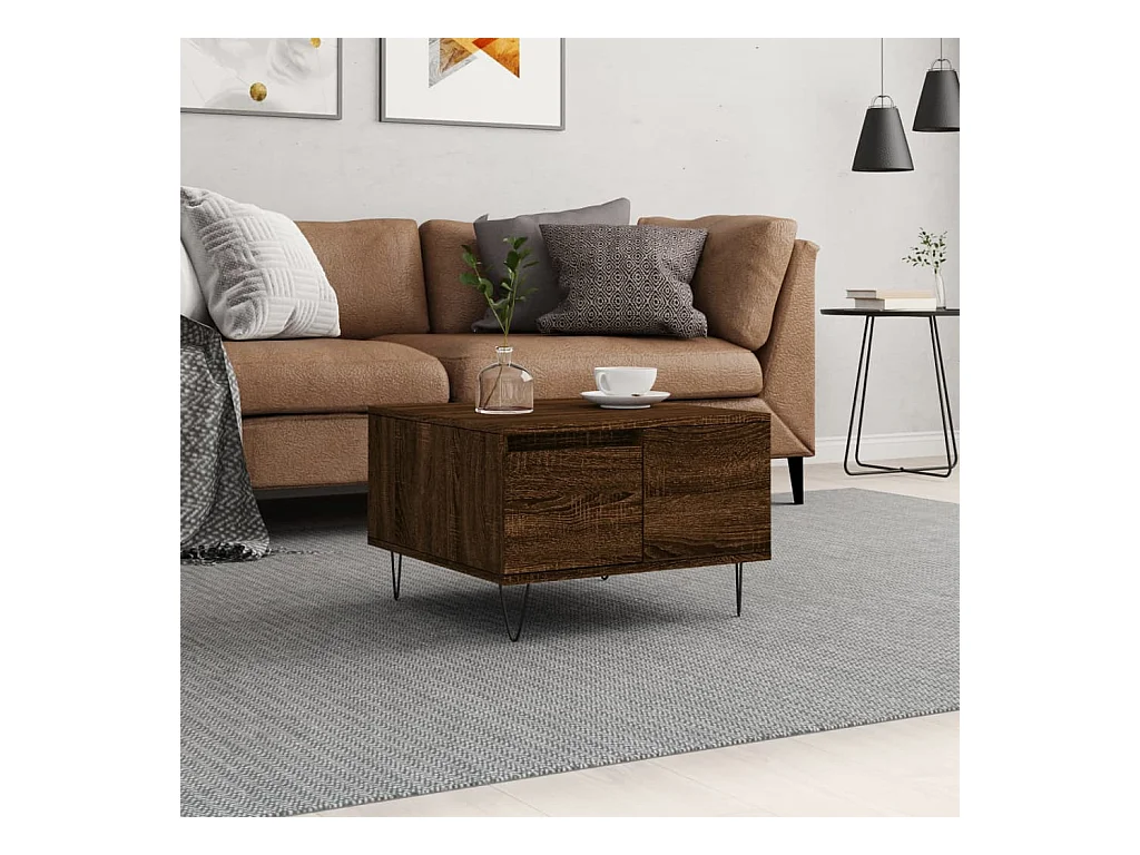 Mesa de centro | Mesa auxiliar madera ingeniería metal roble marrón 95x95x45 cm SHL4348