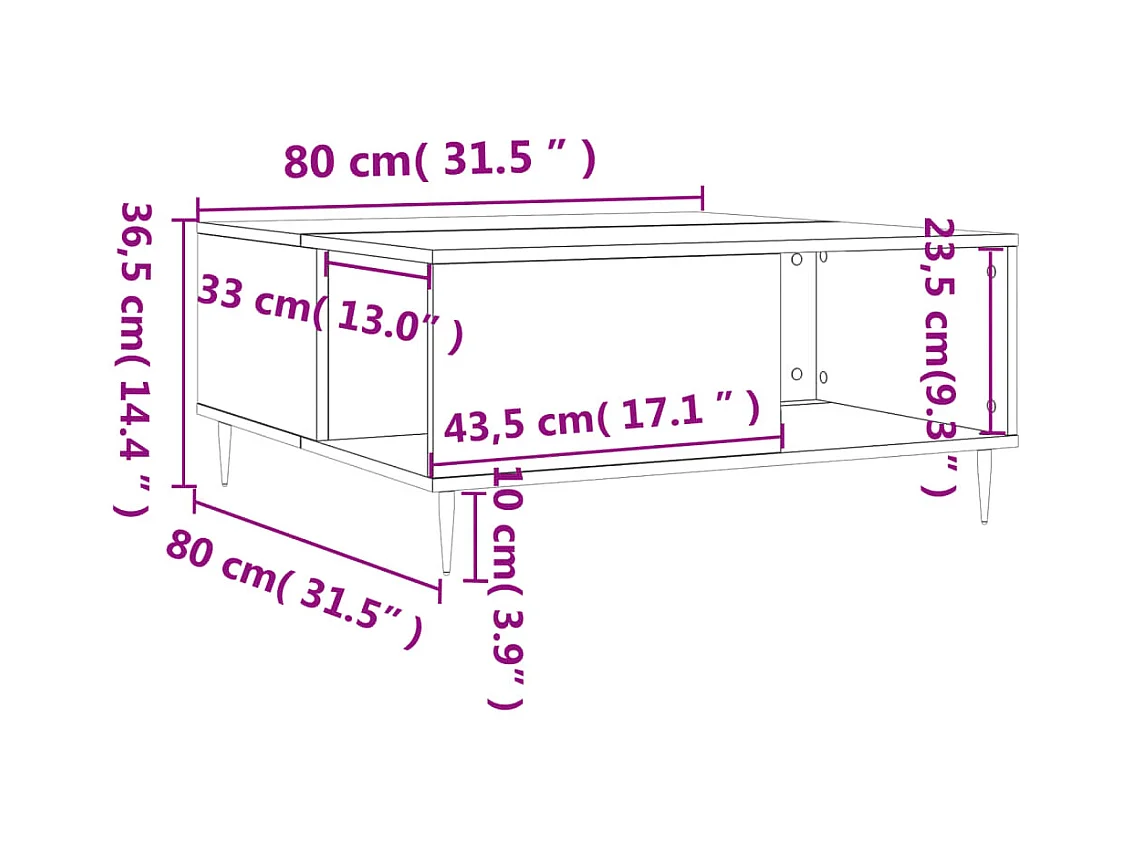Mesa de centro | Mesa auxiliar madera ingeniería metal roble Sonoma 95x95x45 cm SHL2234