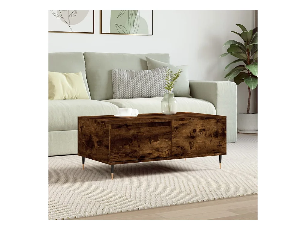 Mesa de centro | Mesa auxiliar madera ingeniería metal roble humo 100x50x35 cm SHL4789