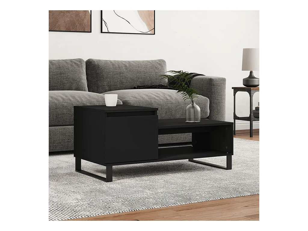 Mesa de centro madera contrachapada y hierro negro 100x50x45 cm