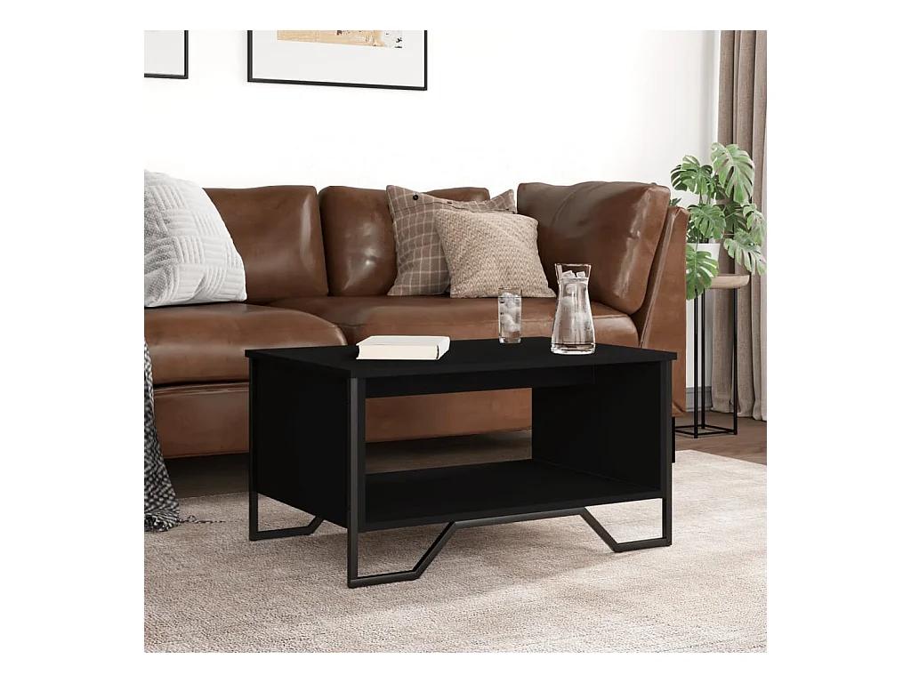 Mesa de centro-Mesa auxiliar madera maciza de mango negra 80x54x40 cm SHL2261