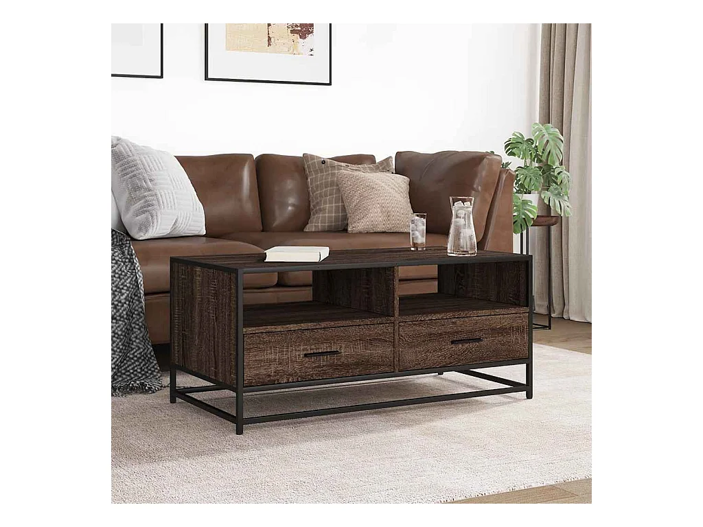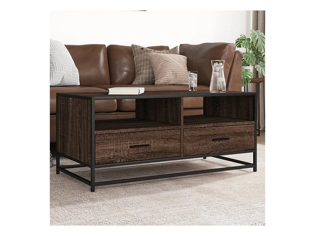 Mesa de centro | Mesa auxiliar madera ingeniería y hierro roble humo 80x80x45cm SHL2704