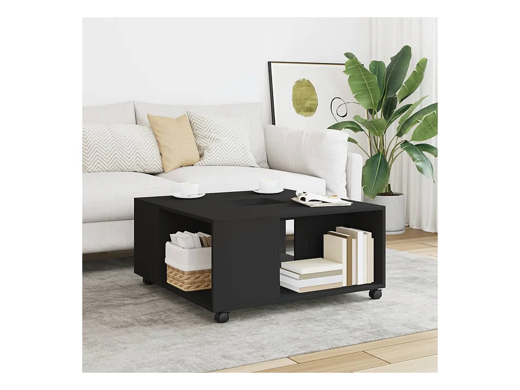 Mesa de centro-Mesa auxiliar de madera maciza de pino negro 80x81x36,5 cm SHL896