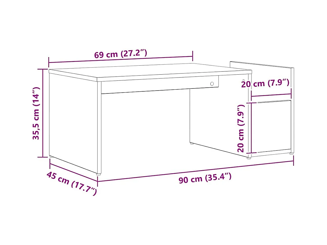 Mesa de centro de roble negro 90x45x35 cm en madera de ingeniería
