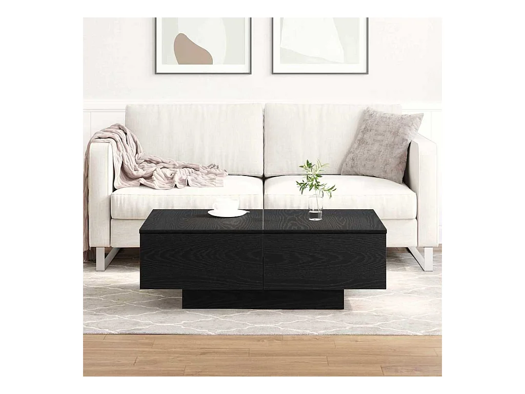 Mesa de centro negra de 90 x 60 x 31 cm de madera de ingeniería