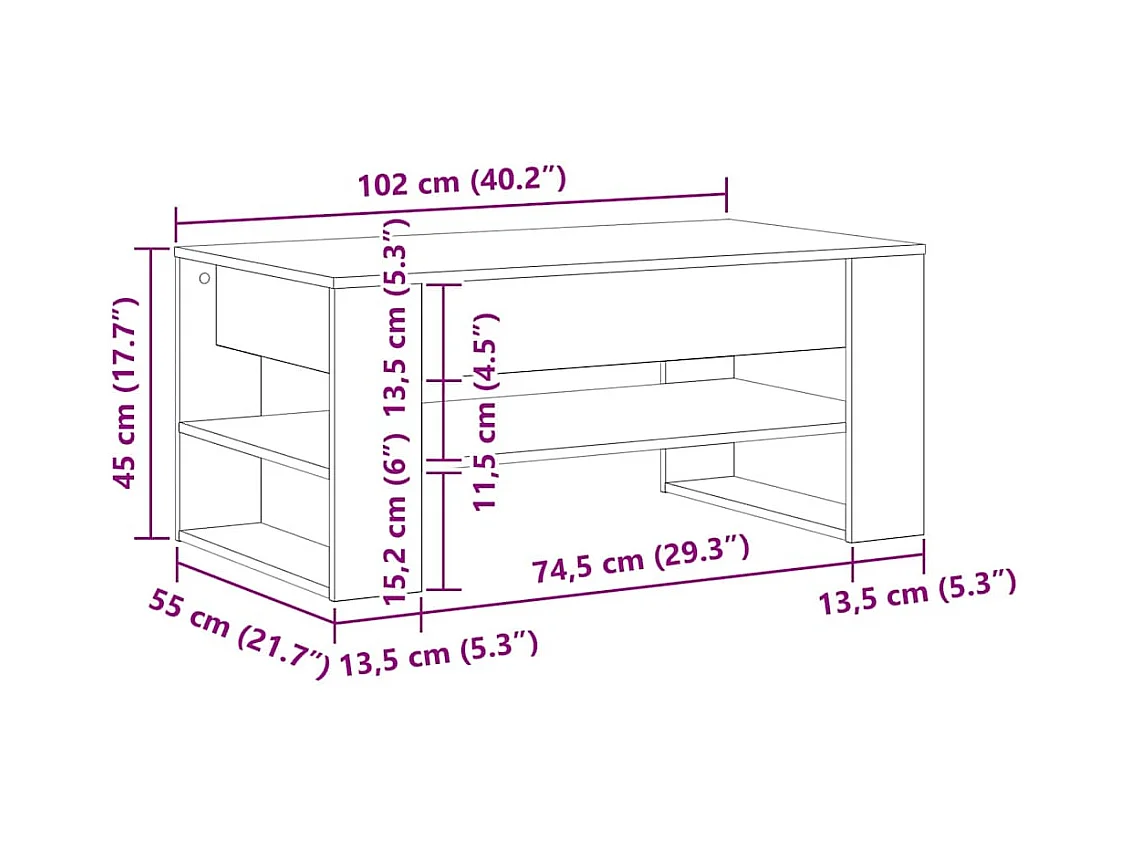 Mesa de centro de roble Sonoma 102x55x45 cm madera de ingeniería