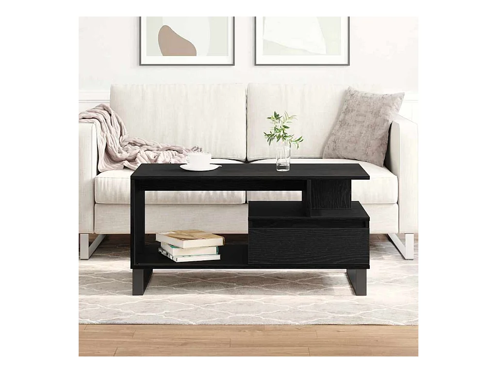 Mesa de centro-Mesa auxiliar-Mesita de centro madera contrachapada negro 96x50x45 cm SHL4944