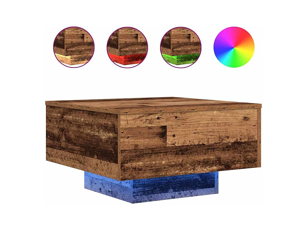 Mesa de centro con luces LED Roble artesanal 55x55x31 cm