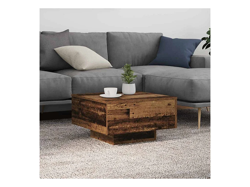 Mesa de centro con luces LED roble ahumado 55x55x31 cm ES518624