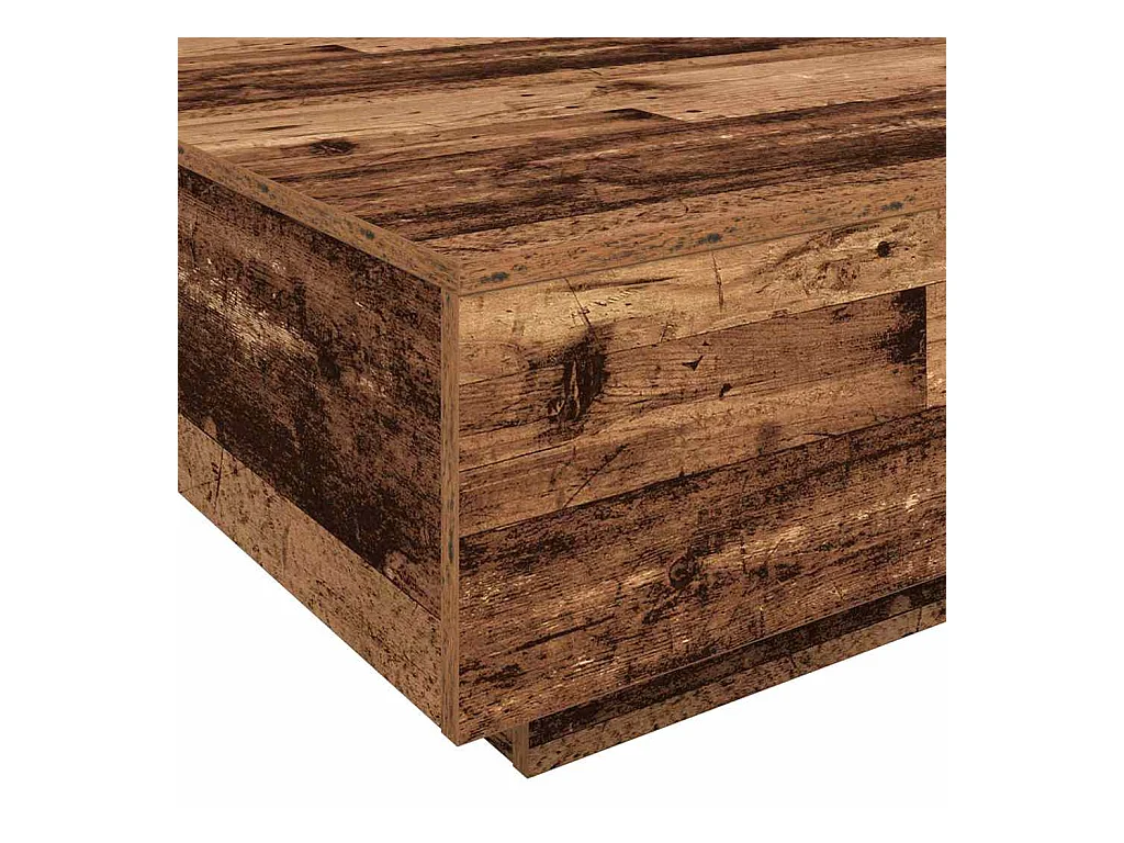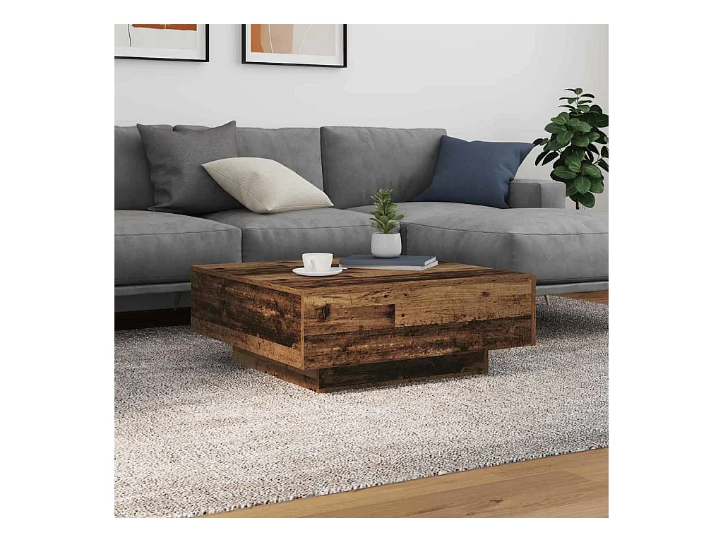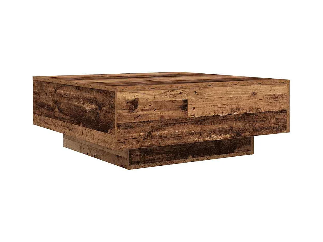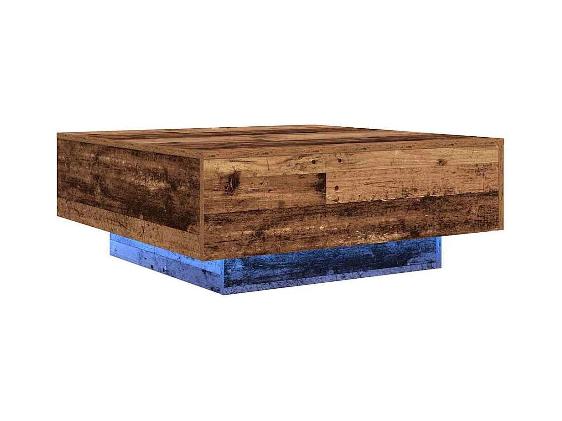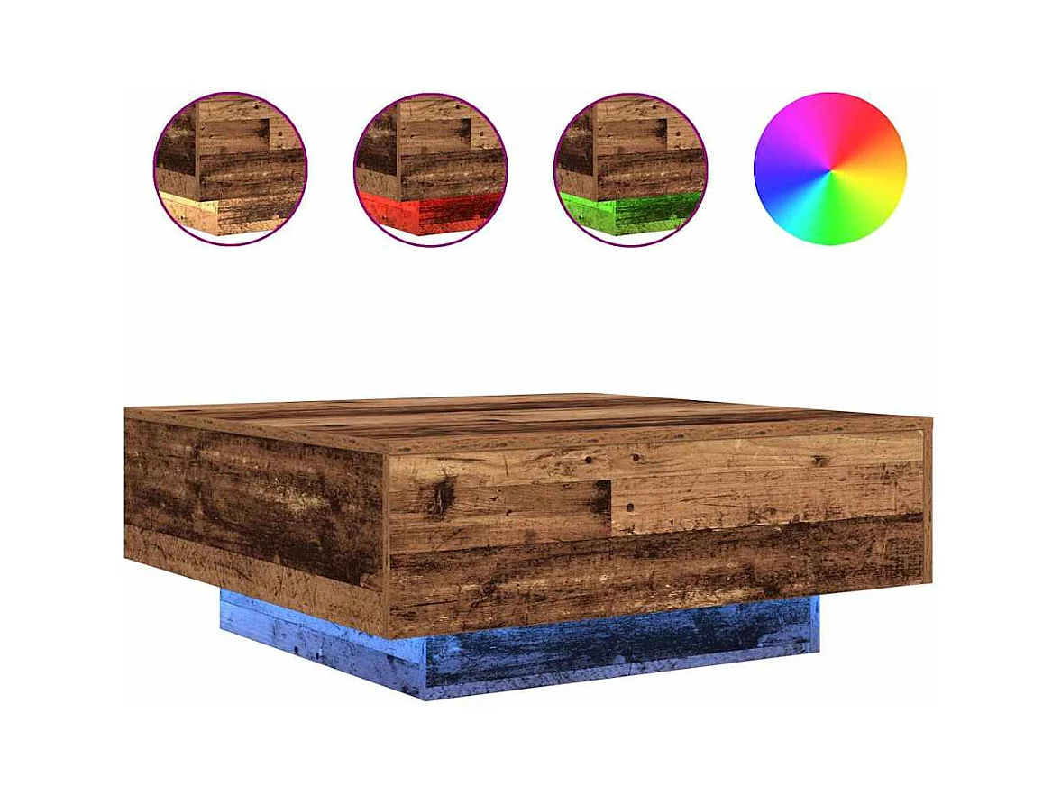 Mesa de centro con luces LED en madera antigua 80x80x31 cm