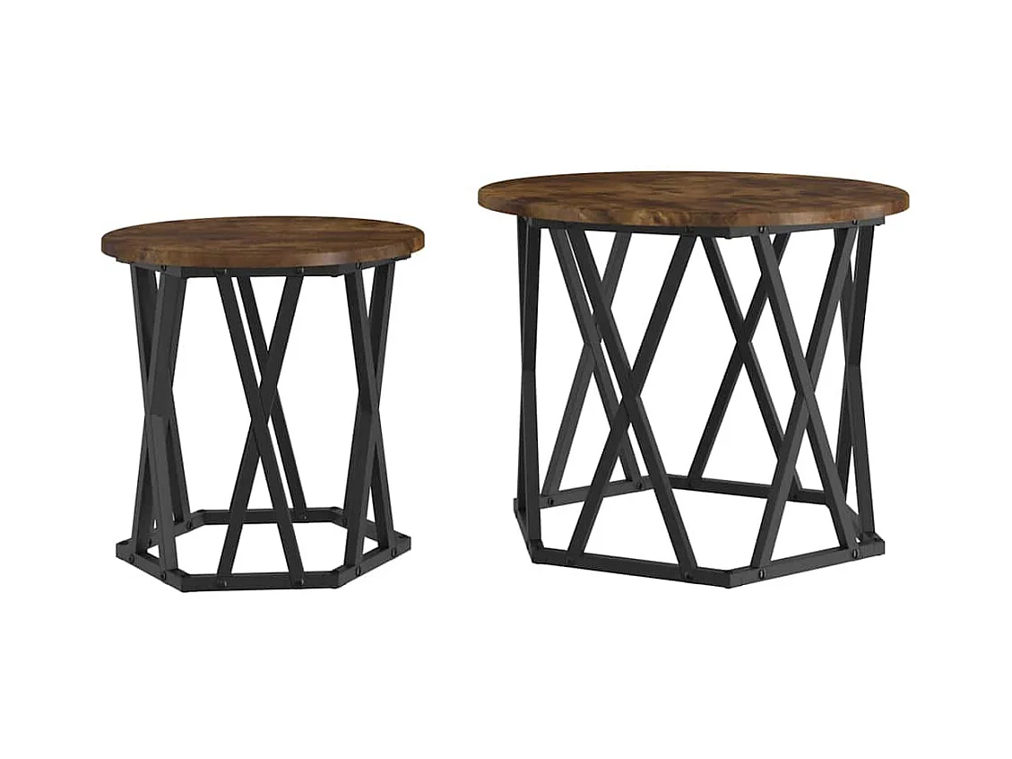 Mesa de centro | Mesas apilables | Mesa auxiliar 2 unidades madera rugosa de mango SHL325758