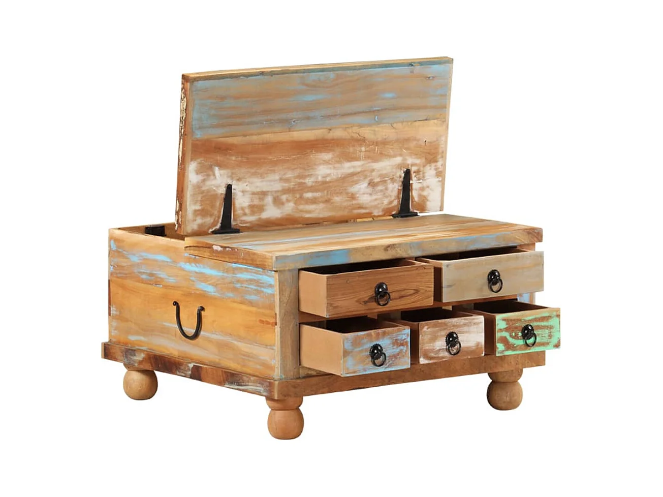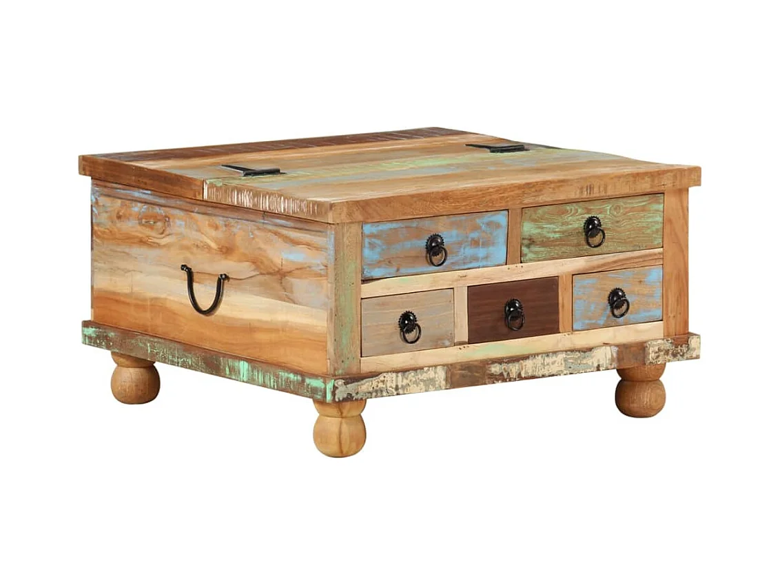 Mesa de centro-Mesa auxiliar de madera maciza de pino negro 60x61x32,5 cm SHL631834