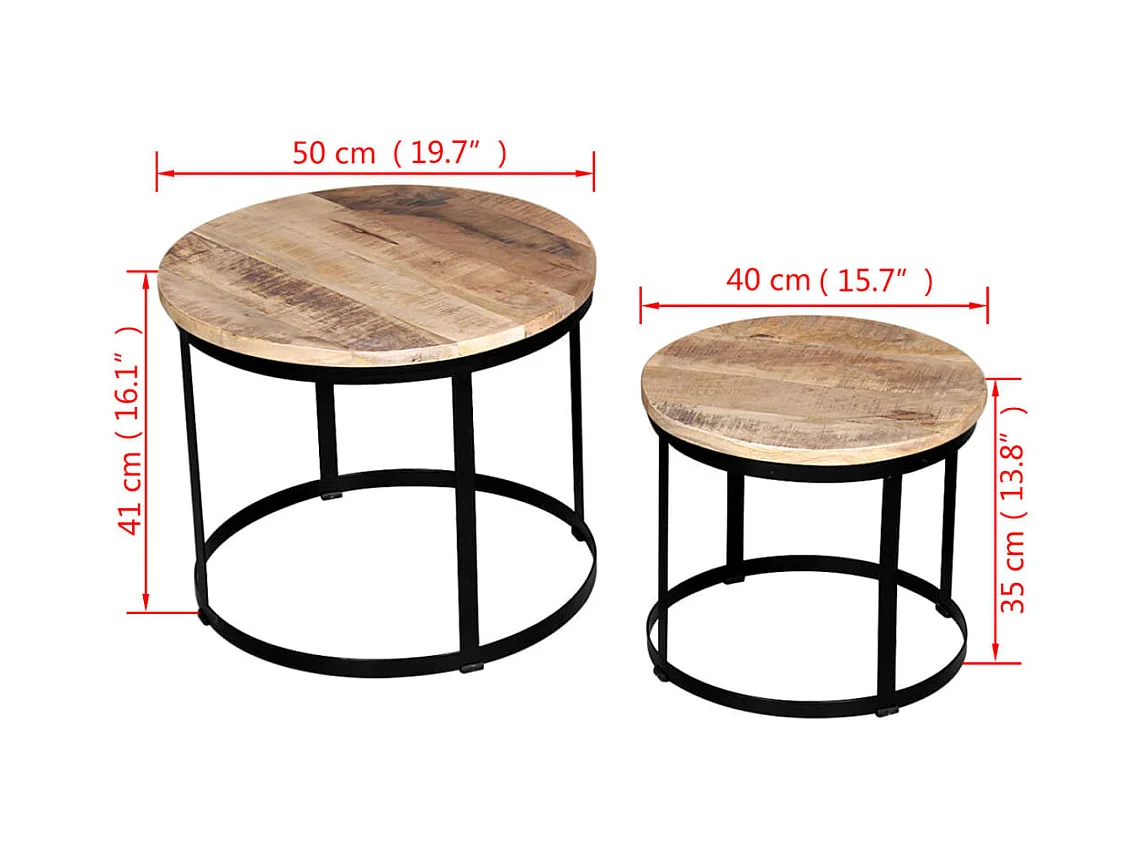 Set de mesa de centro redondas 2 unidades madera de mango 40/50 cm