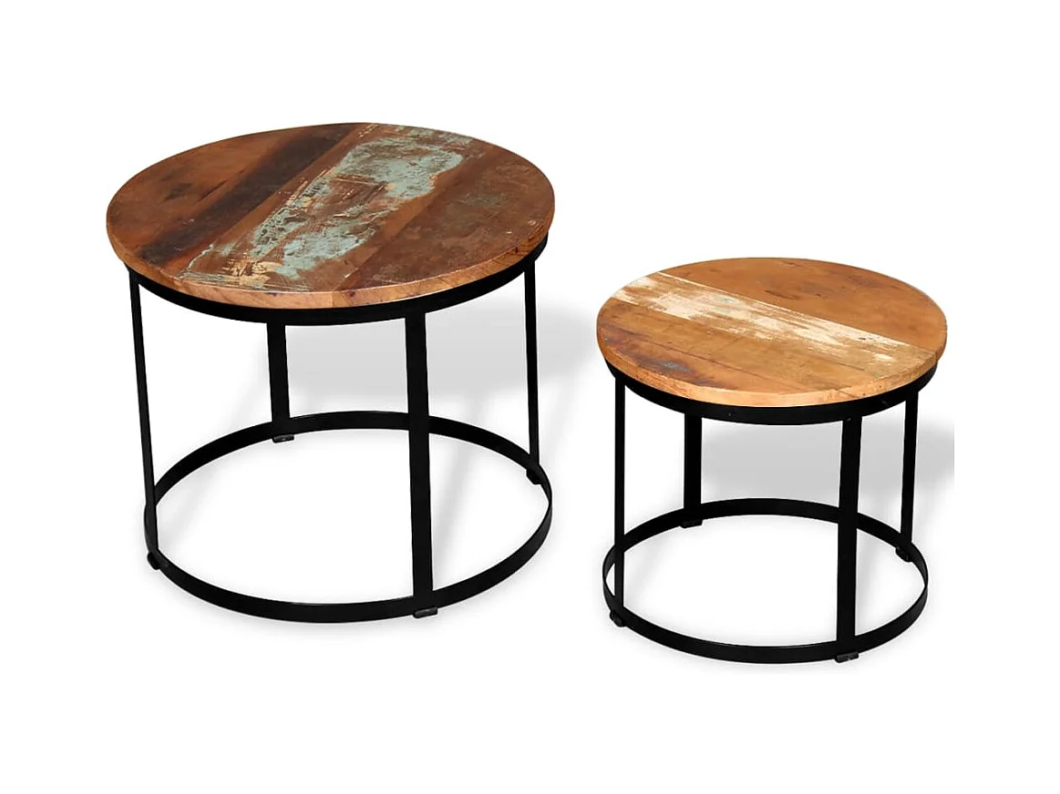Mesa de centro redonda 2 uds madera maciza reciclada 40cm/50cm ES90350