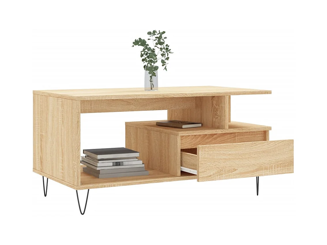 Mesa de centro | Mesa auxiliar madera contrachapada roble marrón 100x50x45 cm SHL150235
