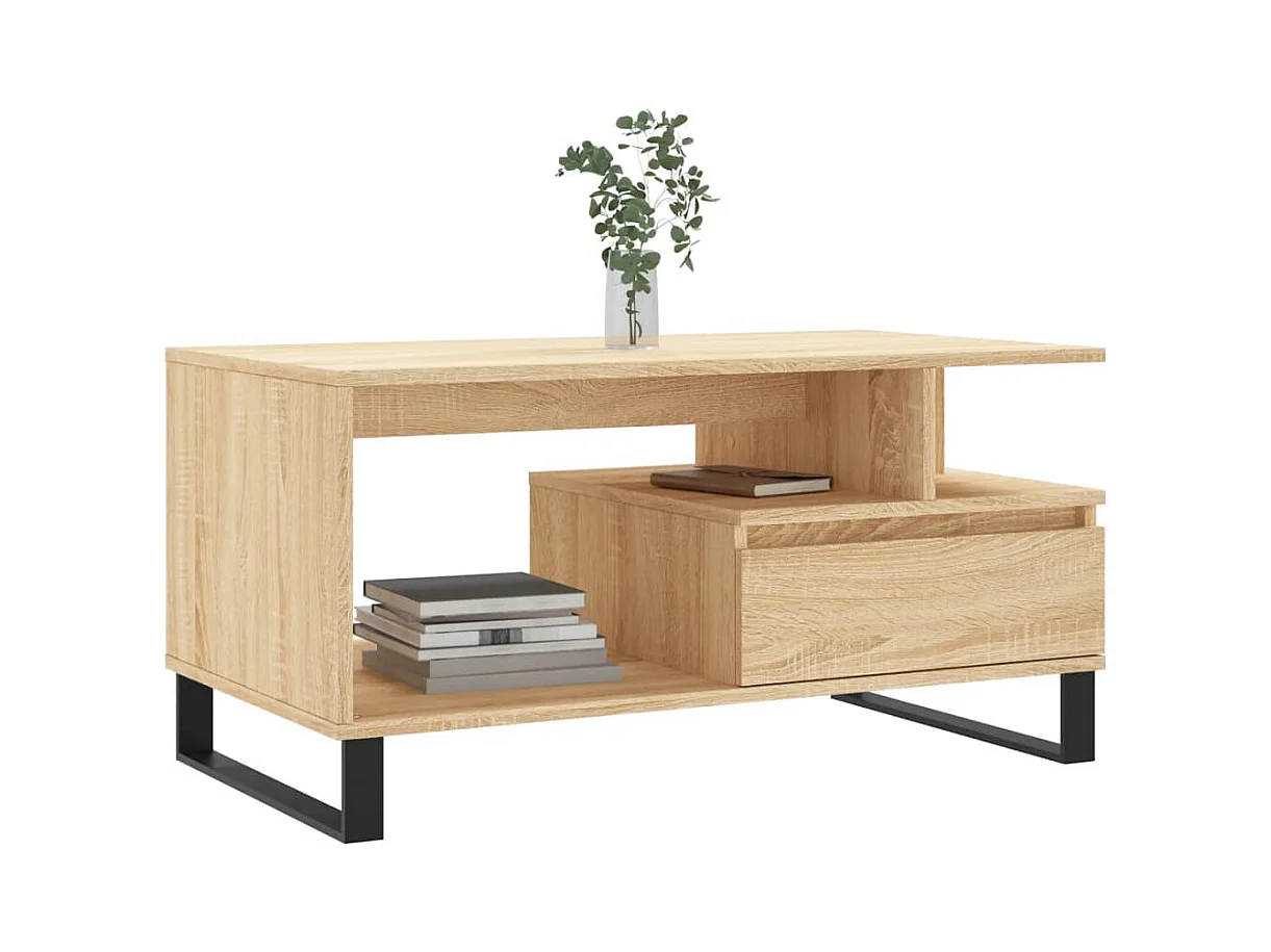 Mesa de centro | Mesa auxiliar madera contrachapada roble marrón 100x50x45 cm SHL150235