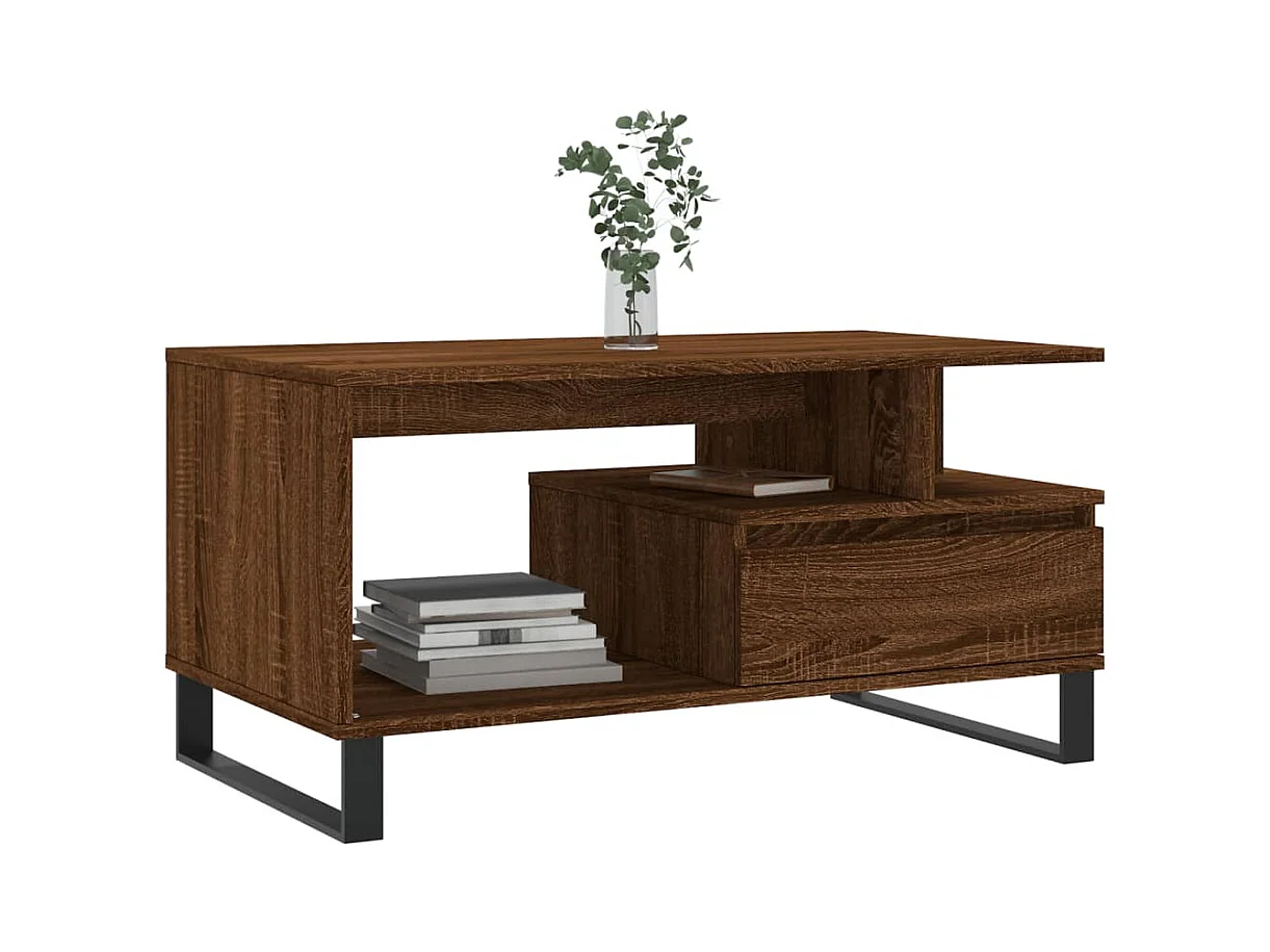 Mesa de centro | Mesa auxiliar madera contrachapada roble marrón 100x50x45 cm SHL150235
