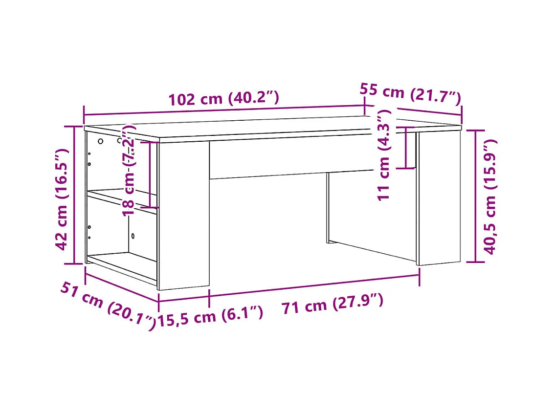 Mesa de centro madera de ingeniería gris Sonoma 102x55x42 cm ES76096