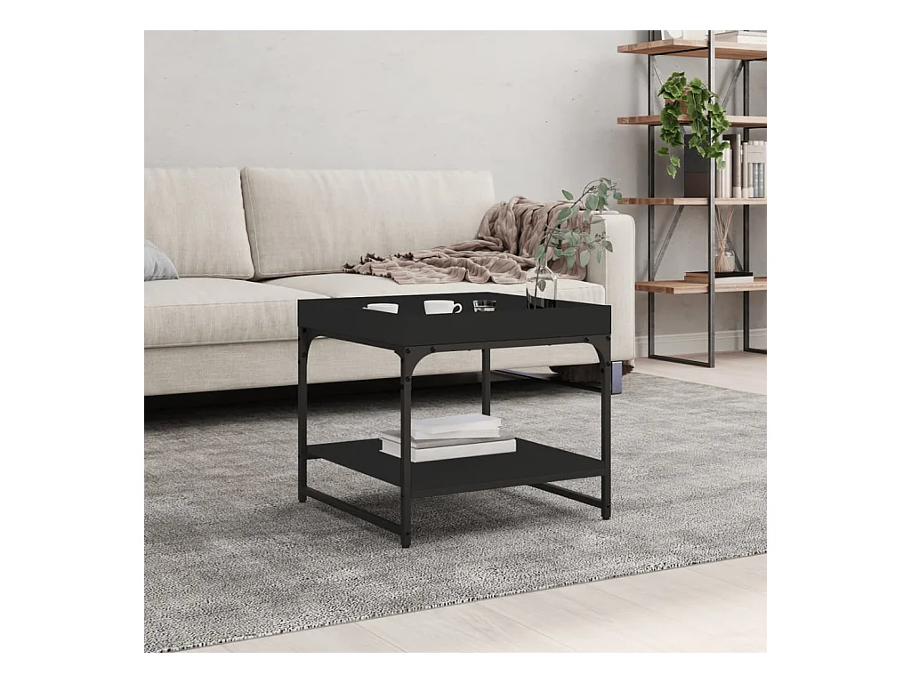 Mesa de centro-Mesa auxiliar madera contrachapada negra 50x50x35 cm SHL404